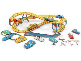 DIVERS Ensemble d'un circuit & 12 véhicules en tôle lithographiée