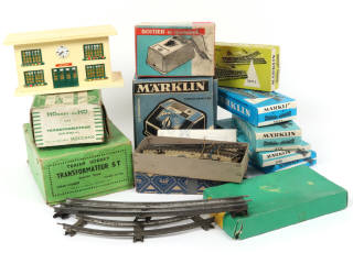 différents écartements - non testé - avec manques & parties cassées - comprend notamment : boitier de commande, transformateurs, aiguillages & rails - on y retrouve notamment les marques : JEP, LIMA, MÄRKLIN & HORNBY - boites en états 'b' à 'd'