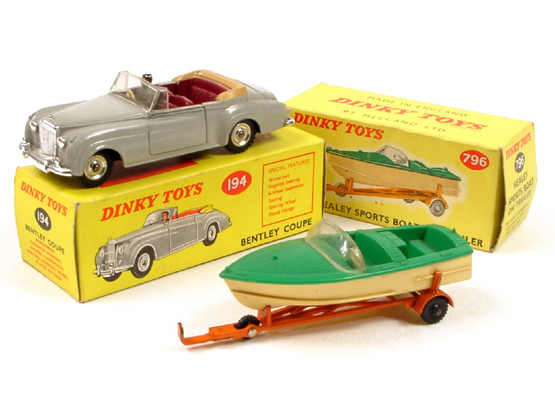 DINKY TOYS (GB) 796 HEALEY SPORTS BOAT avec remorque orange, crème & vert
