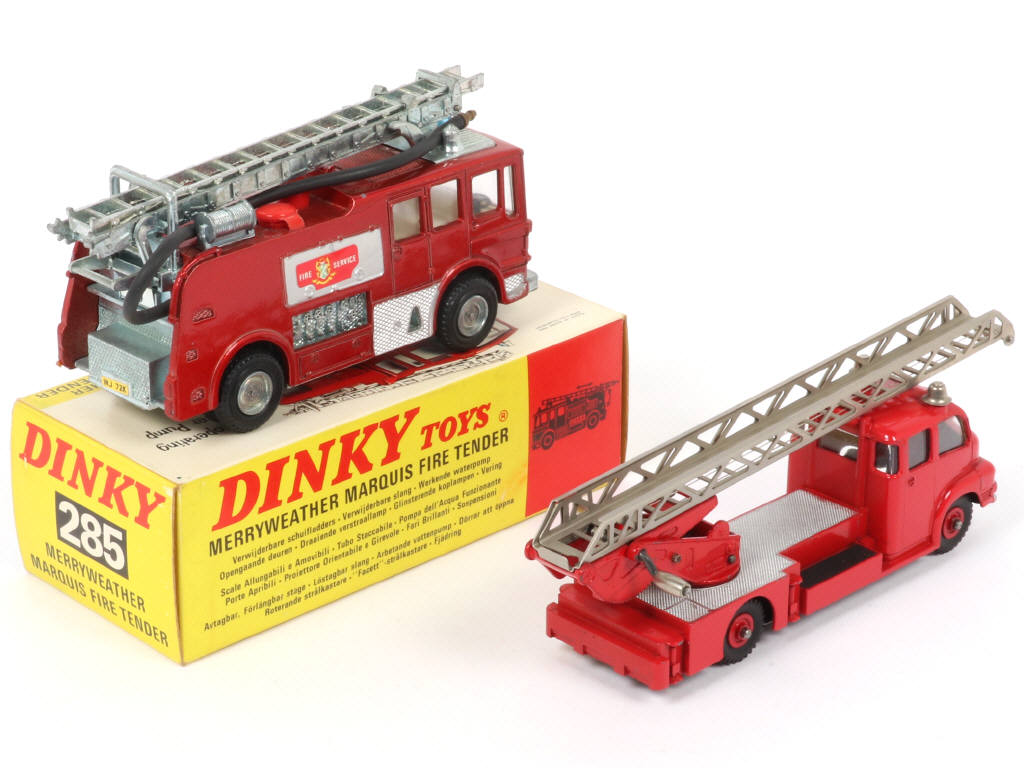 boîte proche de l'état 'a' (annotations sur l'intérieur d'un rabat) - quelques traces d'humidité sur les parties chromées - on y joint un camion de pompiers (référence 956) de la marque en état 'B'