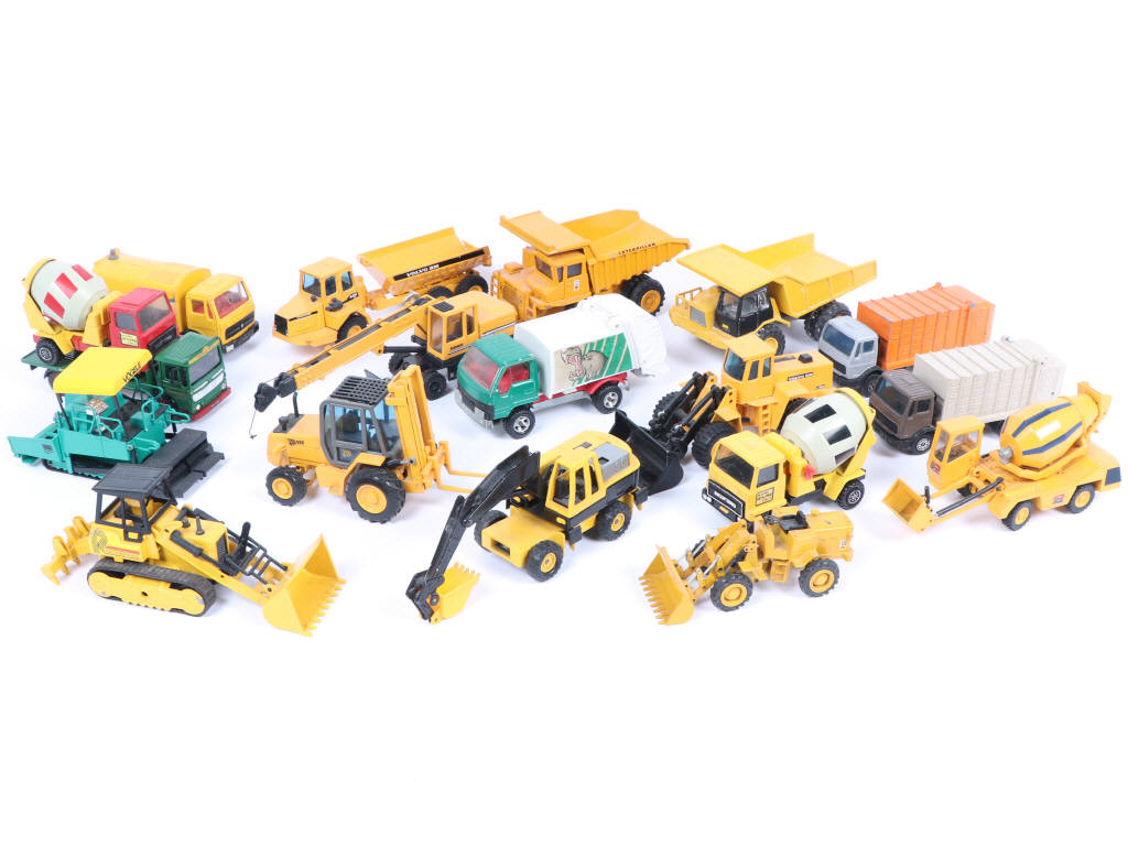 comprend notamment les modèles : VOLVO & MERCEDES - petits éléments manquants & cassés - on y retrouves les marques : JOAL, MAJORETTE & NZG