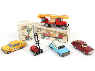 longueur du plus grand : 21 cm - 3 modèles avec moteur à friction (plus ou moins fonctionnels) - on y retrouve notamment la marque : KOVAP (boites en état 'b')