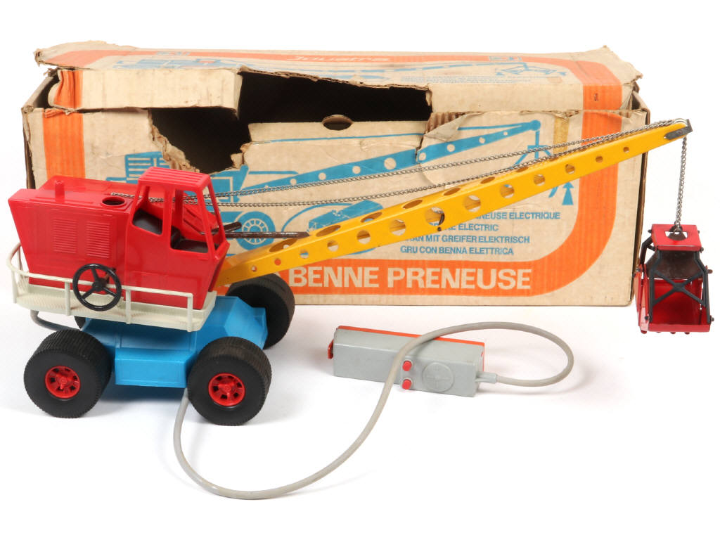 JOUSTRA (FRANCE) 3913 Grue à benne preneuse jaune, bleu & rouge