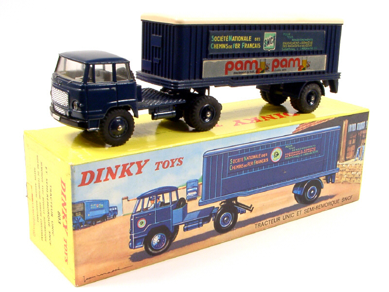 DINKY TOYS (FRANCE) 803 UNIC Semi-remorque 'S.N.C.F PAM PAM' bleu foncé, toit crème