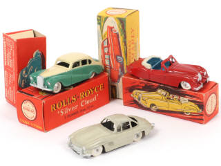 modèles originaux - quelques défauts de peinture d'origine sur la carrosserie de la JAGUAR - 2 exemplaires en boîtes (états 'b' & 'c') - on y joint 2 boîtes vides de la marque en états 'b' & 'c'