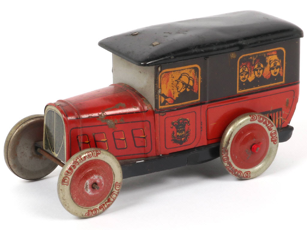 G. de ANDREIS (FRANCE) Fourgonnette des sapeurs-pompiers en tôle lithographiée rouge & noir