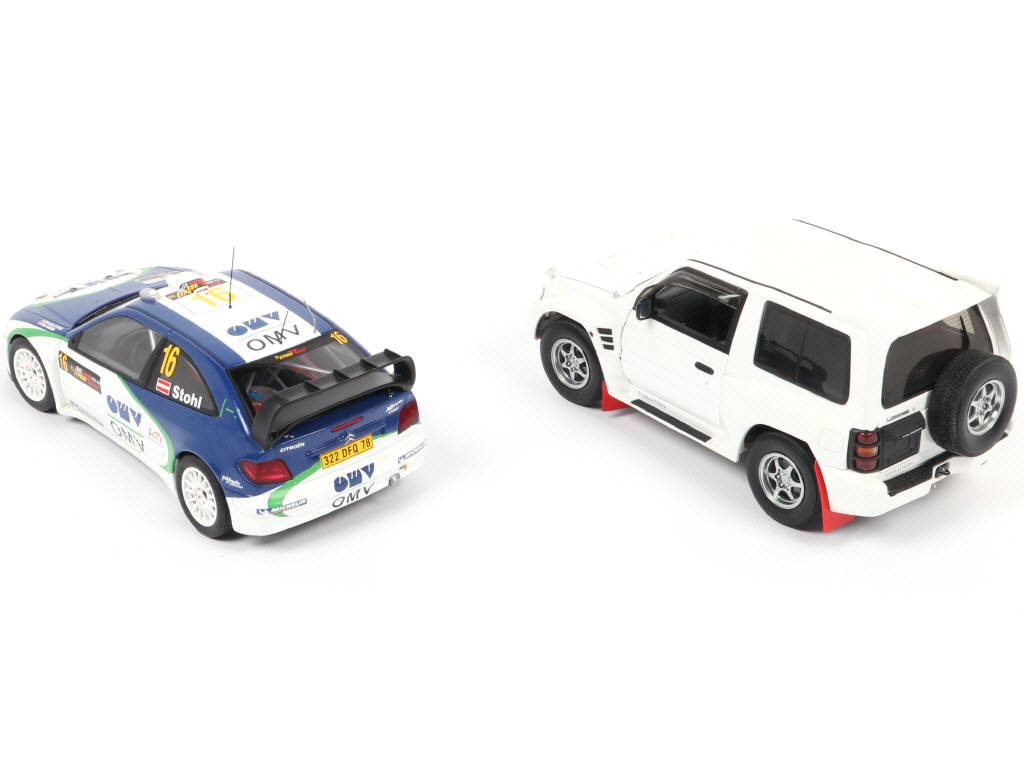 échelle 1:18 - comprend les modèles : CITROËN XSARA WRC & MITSUBISHI PAJERO - légers manques sur la CITROËN - modèles légérement encrassés