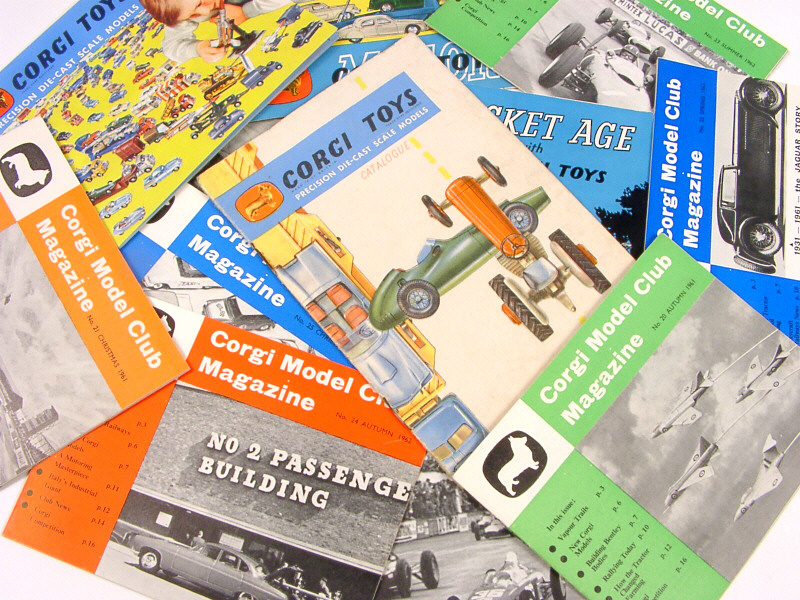 CORGI TOYS (GB) Ensemble de 9 bulletins du 'CLUB CORGI', 2 catalogues & 2 dépliants