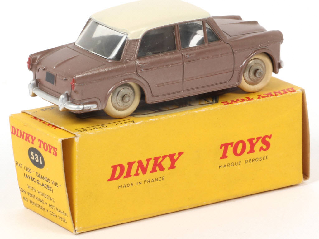 DINKY TOYS (FRANCE) 531 FIAT 1200 GRANDE VUE (version avec jantes convexes) havane métal, toit crème