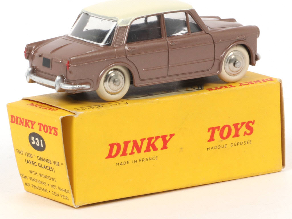 DINKY TOYS (FRANCE) 531 FIAT 1200 GRANDE VUE (version avec jantes convexes) havane métal, toit crème