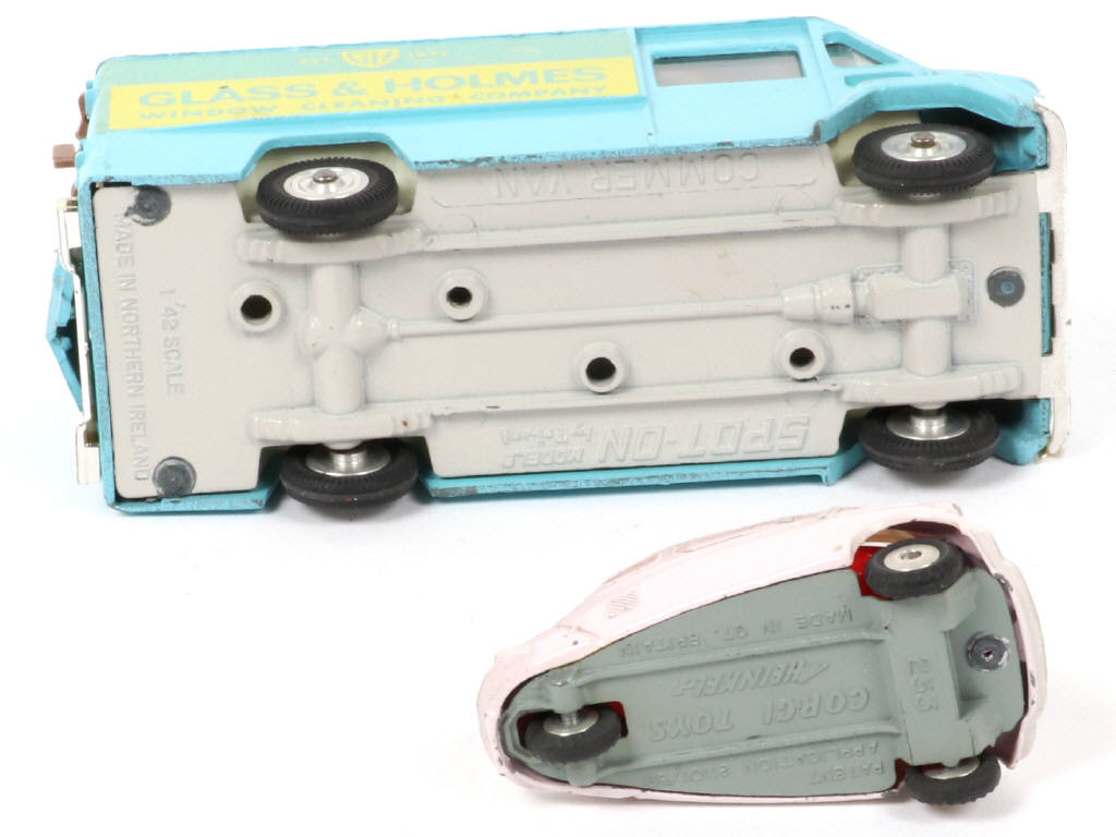 extrémités de pare-choc arrière cassées & manquantes - quelques petites retouches par endroits - on y joint une BENTLEY de la marque en état 'A-' & un HEINKEL de la marque CORGI TOYS en état 'D' avec carrosserie décolorée