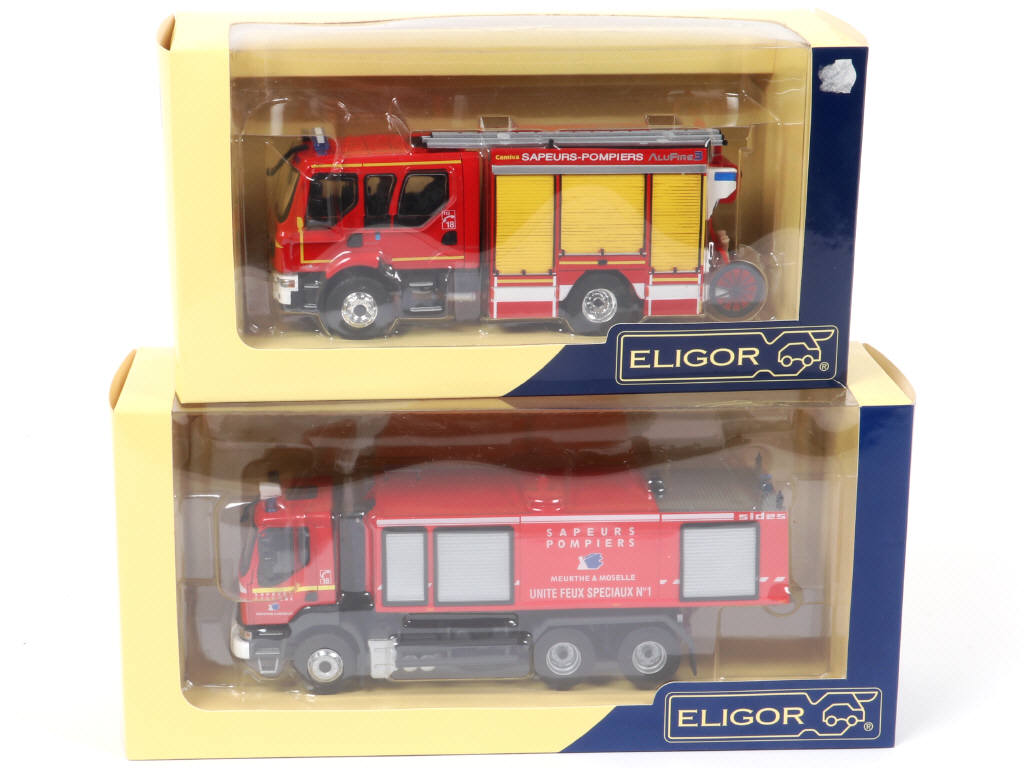ELIGOR (FRANCE) Ensemble de 2 camions de pompiers