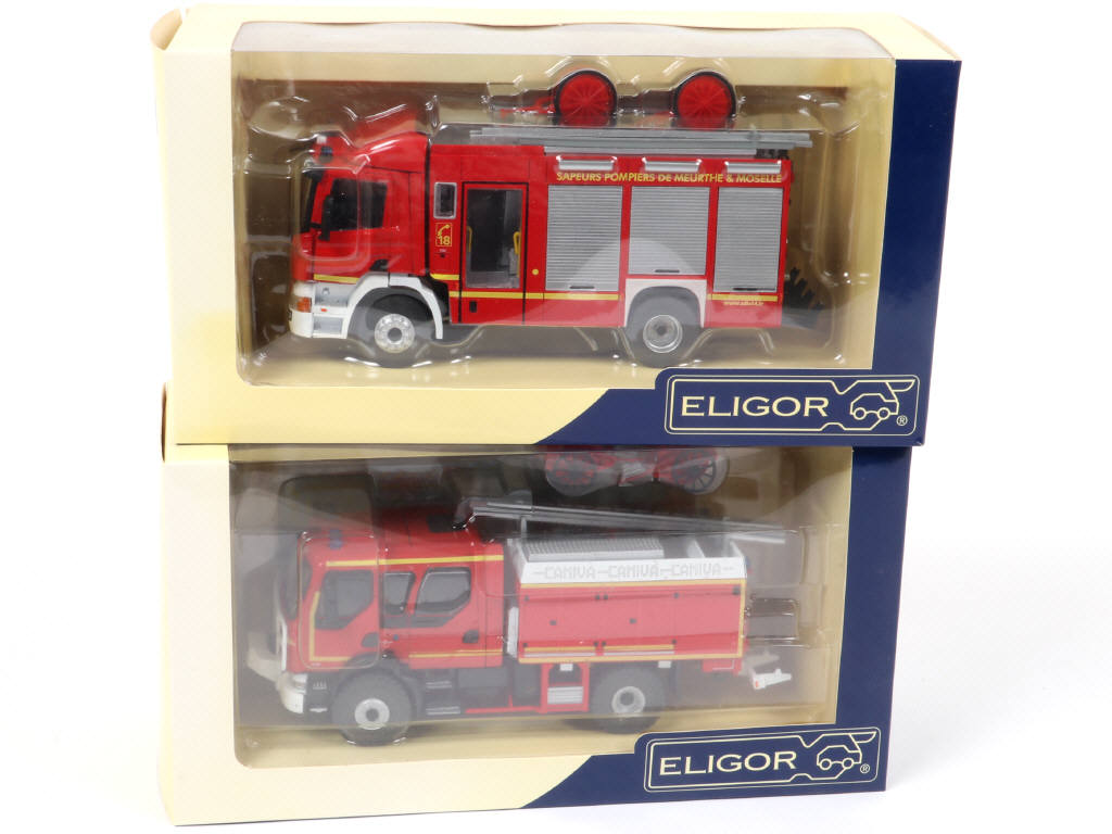 ELIGOR (FRANCE) Ensemble de 2 véhicules de pompiers