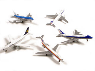 comprend : 2 AIRBUS A 300, un BOEING 727, un BOEING 747/200 B AIR FORCE ONE PRESIDENTIAL JET (RARE !) & un BOEING 747/400 - on y retrouve les compagnies : AIR FRANCE, LUFTHANSA, UNITED & KLM