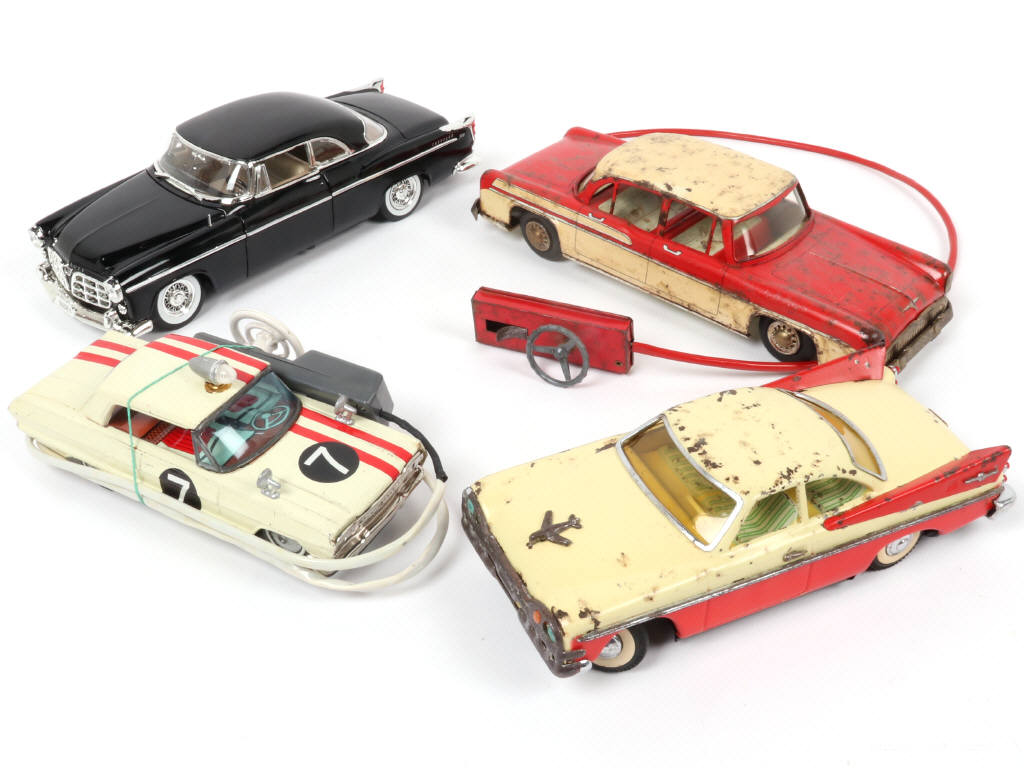 longueur du plus grand exemplaire : 30 cm - 3 exemplaires avec moteur à piles non testés - avec restaurations, parties repeintes & éléments manquants (plus ou moins importants suivants les exemplaires) - on y retrouve notamment les marques : ICHIKO & MOTOR MAX