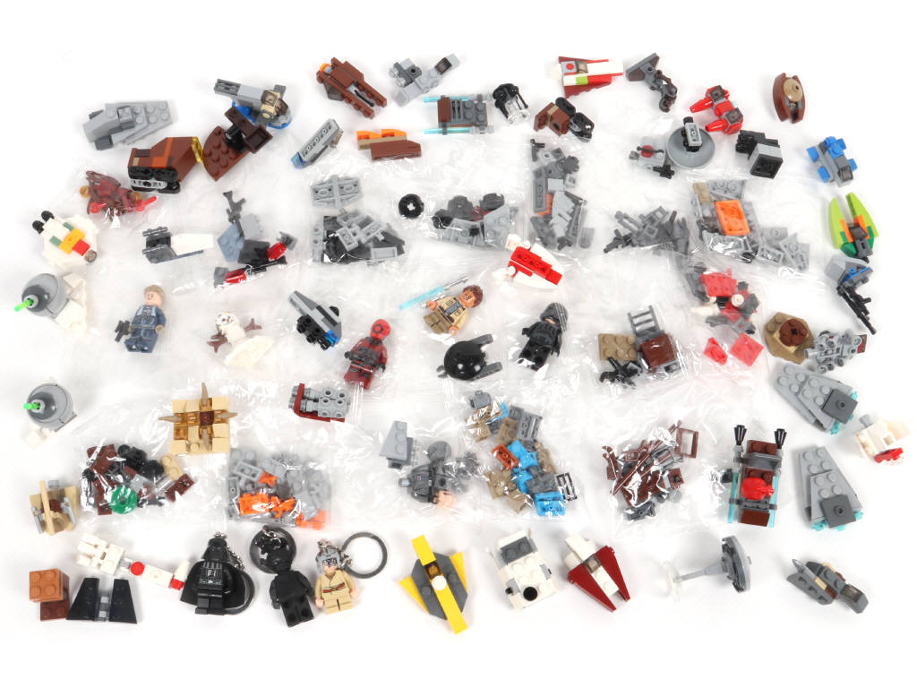 provenant en majorité de calendriers de l'avent - comprend 19 sachets jamais ouverts (dont figurines), 3 porte-clés & nombreux accessoires montés