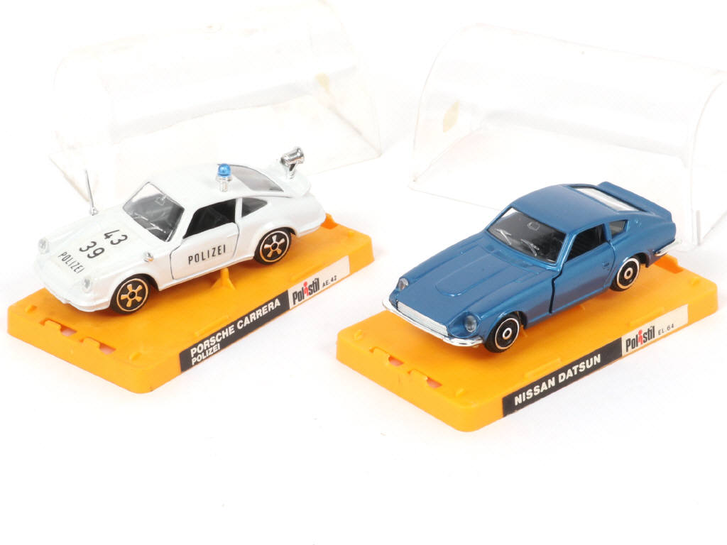 comprend : PORSCHE CARRERA 'POLIZEÏ' (quelques micro frottements sur la carrosserie par endroits) & NISSAN DATSUN