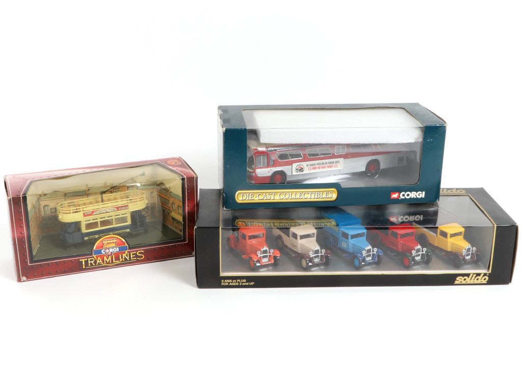 on y retrouve notamment les marques : CORGI TOYS & SOLIDO - certaines boites avec blisters déchirés, frottements & légers accrocs
