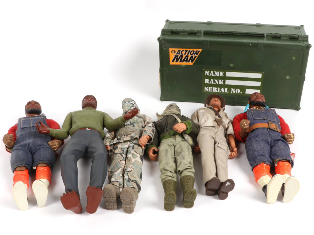 année 1983 - dimension 30cm (manque quelques petits accessoires) - on y joint une boîte militaire & 2 poupées 'ACTION MAN', une figurine de marque U.C.S & une poupée INDIANA JONES