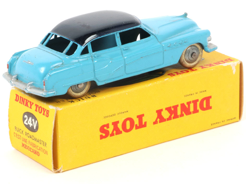 DINKY TOYS (FRANCE) 24V BUICK ROADMASTER (version avec intérieur de toit lisse & jantes zamac brut) 2 tons de bleu