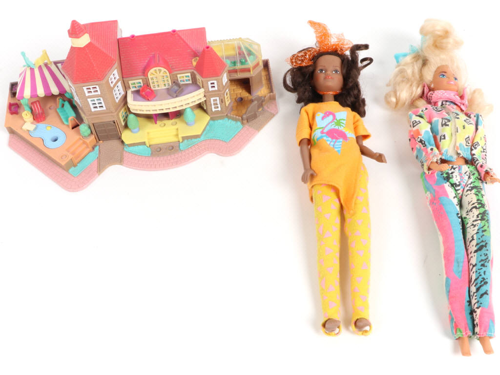 on y retrouve les marques : HASBRO & MATTEL - on y joint POLLY POCKET Light-up Magical Mansion Playset de la marque BLUEBIRD TOYS (possibilité de petits accessoires manquants) - ensemble légèrement encrassé
