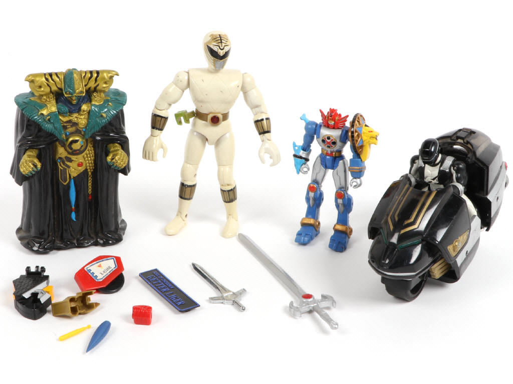 BANDAÏ (JAPON) Ensemble de 4 figurines POWER RANGERS & divers accessoires