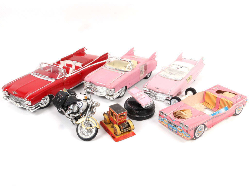 on y retrouve notamment le modèle CADILLAC (réalisations en plastique, métal, carton & porcelaine) - avec manques & parties cassées (non testé)