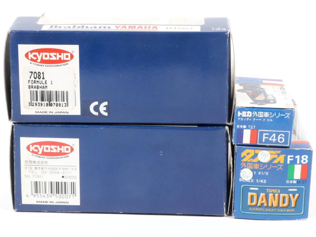 on y retrouve les marques : KYOSHO, DANDY & TOMY - certaines boîtes avec légers accrocs