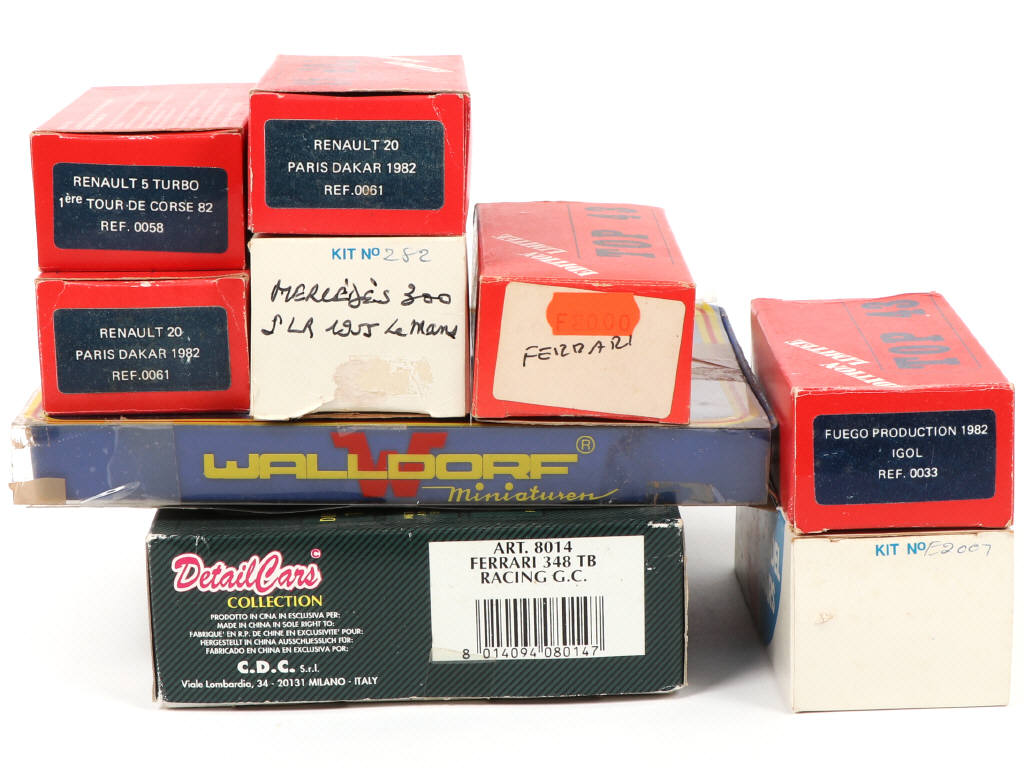 résine & métal - comprend les modèles : RENAULT, FERRARI & MERCEDES - semblent complets - on y retrouve les marques : TOP 43, JOHN DAY, DETAIL CARS & WALLDORF