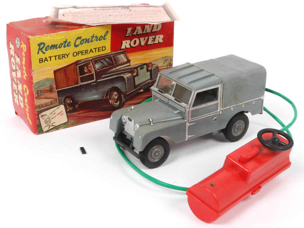 réalisation en plastique - fabriqué en Asie - longueur 19 cm - avec moteur à piles & direction (fonctionnent) - avec notice (parties manquantes) - une extrémité de pare-choc cassée