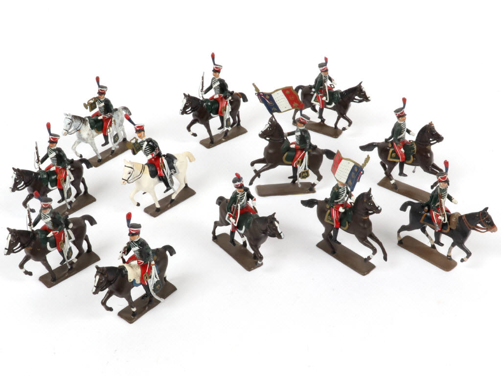 C.B.G. (FRANCE) Ensemble de 12 chasseurs du Premier Empire sur leur monture
