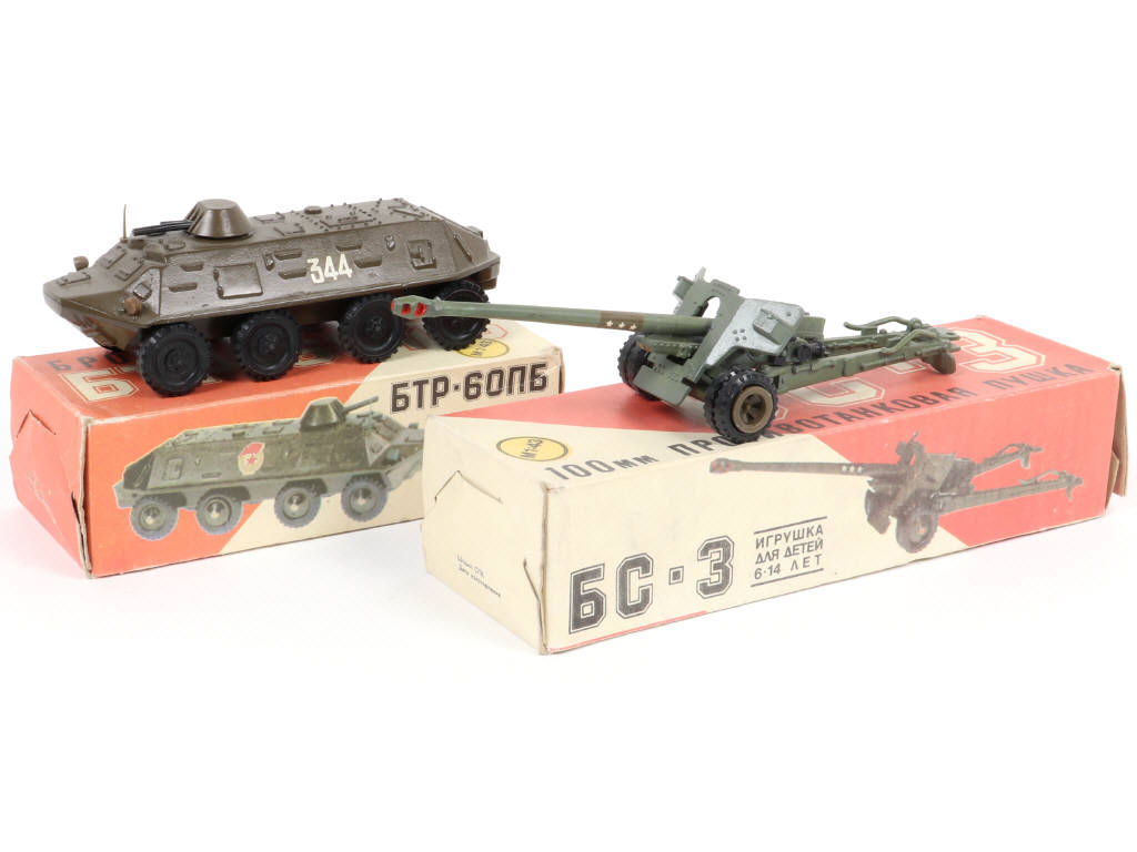 DIVERS (URSS) Ensemble d'un blindé léger soviétique & un canon de 100mm kaki