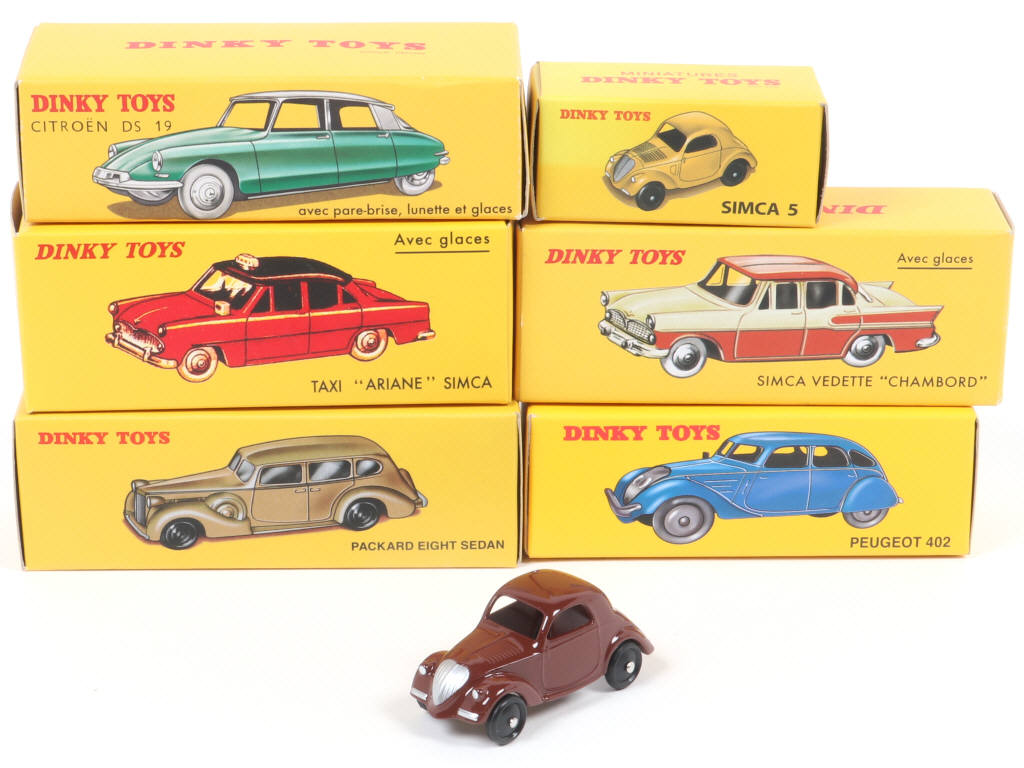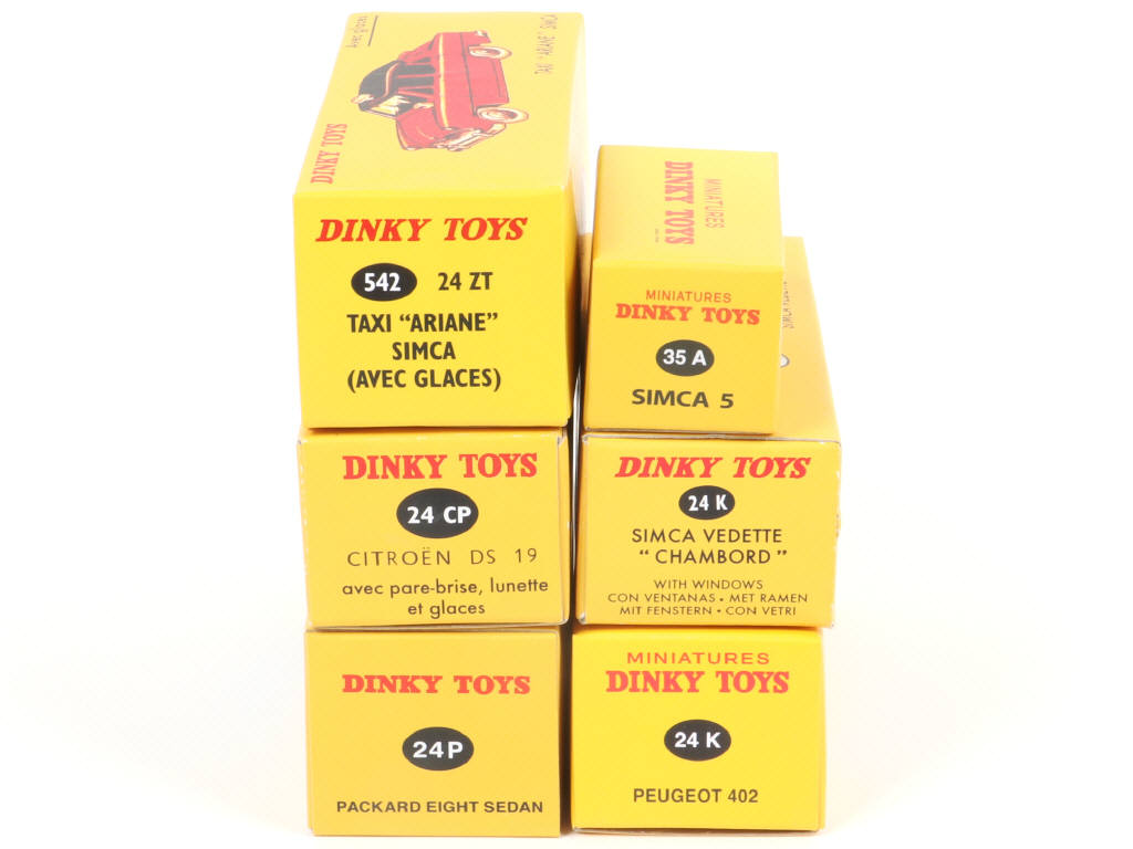 réédition DINKY TOYS FRANCE - on y retrouve notamment les marques : SIMCA, PEUGEOT & CITROËN - une boîte légèrement décolorée