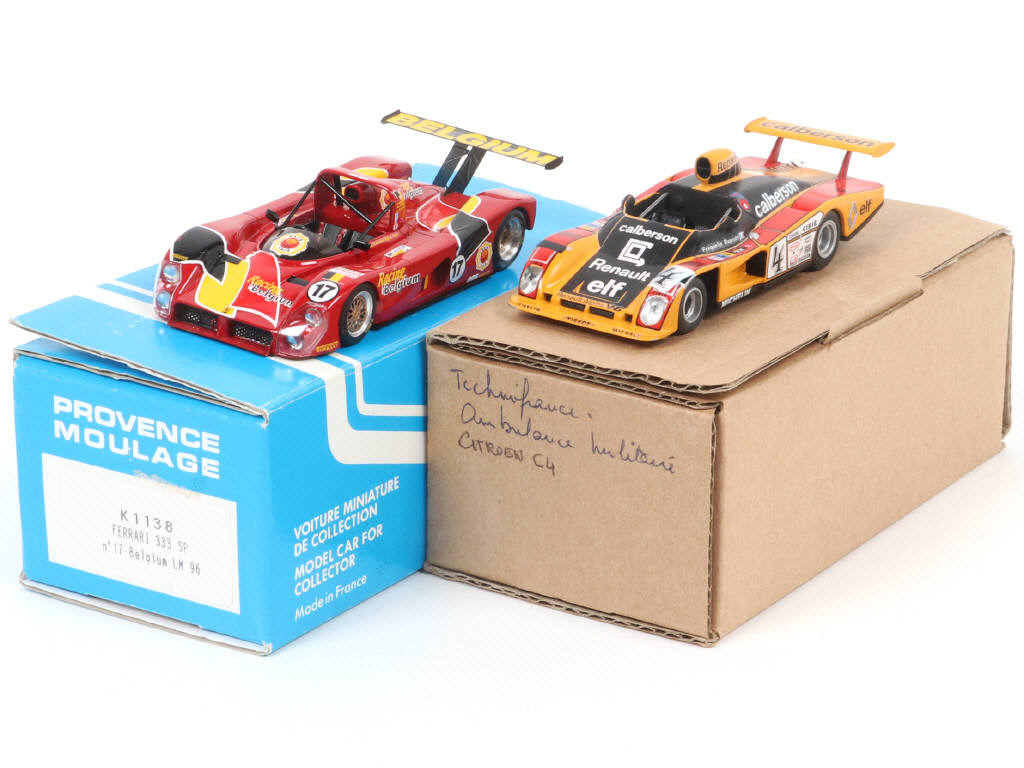 kits montés en résine - on y retrouve les marques : PROVENCE MOULAGE & un transkit sur base SOLIDO (boîte non d'origine)