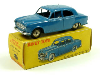 DINKY TOYS (FRANCE) 24B PEUGEOT 403 (version sans vitre & avec jantes convexes) bleu nattier