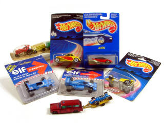 on y retrouve notamment les marques MAJORETTE, JOUEF & HOT WHEELS - 6 modèles sous blister jamais ouvert dont 2 promotionnels pour ELF - un modèle en état 'C' avec un phare manquant