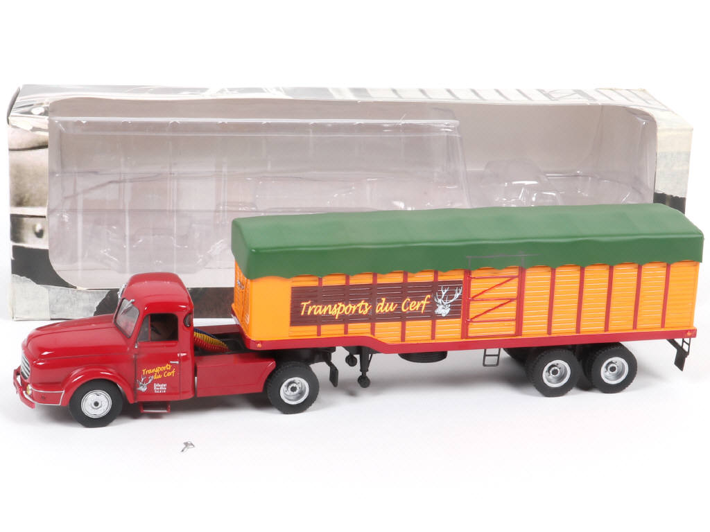 IXO (CHINE) WILLEME LC610 semi-remorque 'TRANSPORT DU CERF' rouge, noir, orange a vert