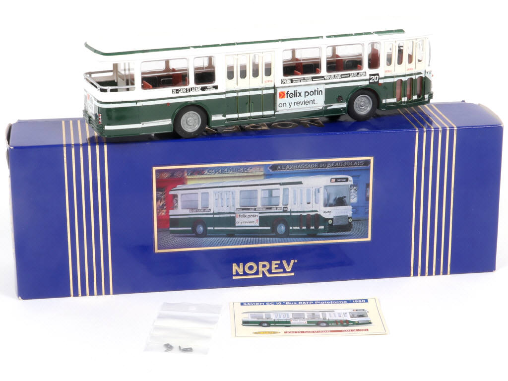 NOREV (FRANCE) 530000 SAVIEM SC 10 U Autobus parisien avec plate-forme arrière vert foncé & blanc