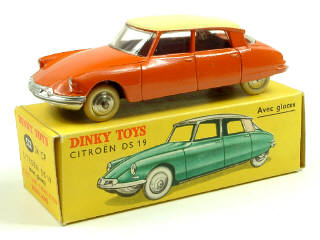 DINKY TOYS (FRANCE) 24CP CITROËN DS 19 (version avec vitres & jantes convexes) orange, toit coquille d'oeuf