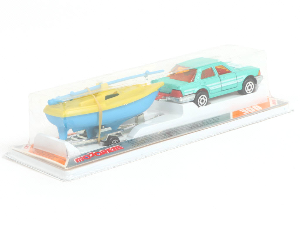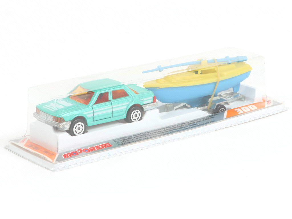 MAJORETTE (FRANCE) 338 HONDA ACCORD & voilier sur remorque vert, bleu & jaune