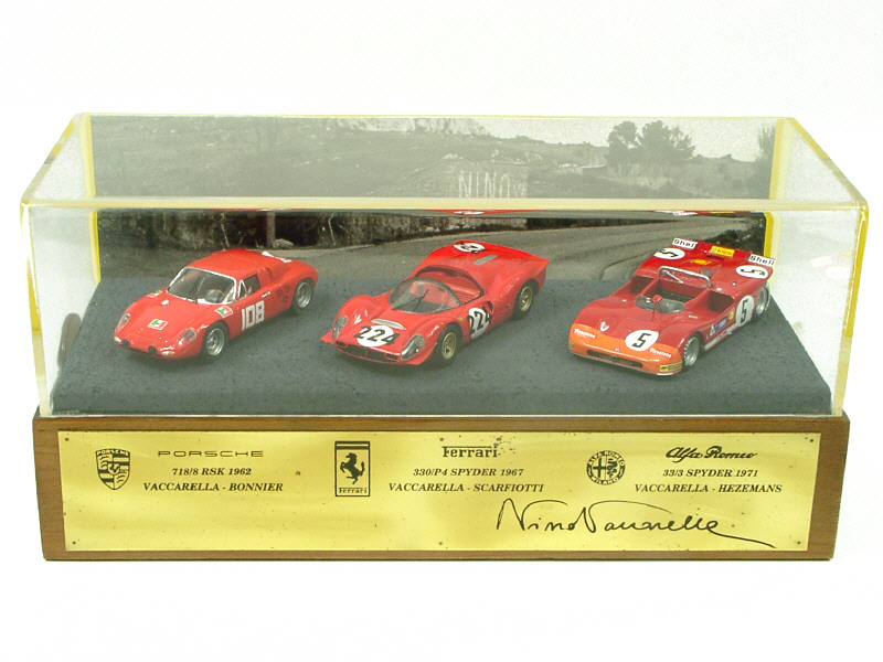contient : une PORSCHE 718/8 RSK de 1962, une FERRARI 330 P4 spyder de 1967 & une ALFA ROMEO 33/3 spyder de 1971 - série limitée numérotée 22/50 exemplaires avec autographe du pilote - SUPERBE !