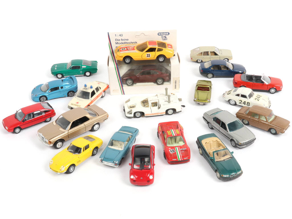 on y retrouve notamment les marques : SCHABAK (un exemplaire en boîte état 'b'), SOLIDO, DETAILS CAR & MODEL BOX - quelques manques & parties cassées sur certains exemplaires