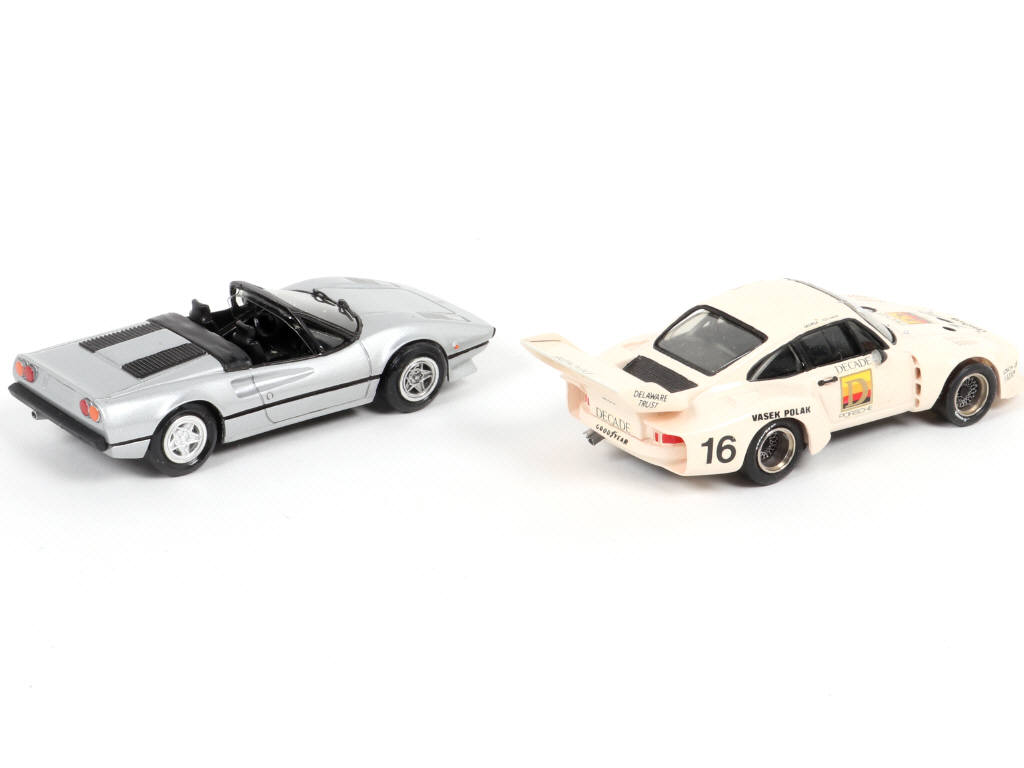 miniatures reproduisant les modèles : PORSCHE 935 (un essuie-glace manquant) & FERRARI 308