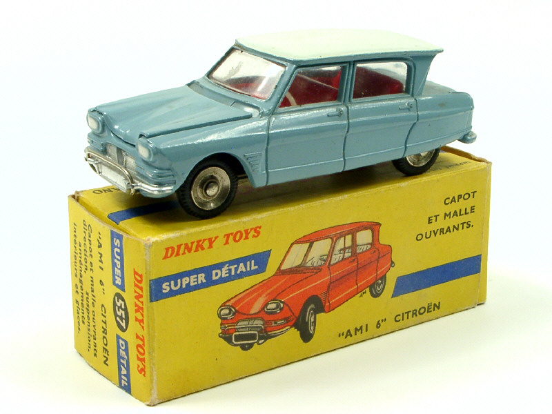 DINKY TOYS (FRANCE) 557 CITROËN AMI 6 (version avec roue de secours sous le capot) bleu ciel, toit blanc