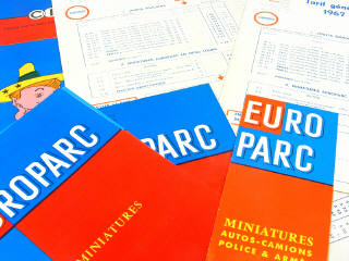 comprend : 5 catalogues sur la gamme C.I.J. EUROPARC (petites annotations sur quelques exemplaires), 4 tarifs généraux des années 1965, 1966 & 1967 (2 exemplaires) & un courrier d'usine mentionnant la sortie du camion SAVIEM PREFONTAINE référence 3/79 en remplacement du camion EVIAN référence 3/94 daté du 6 novembre 1967