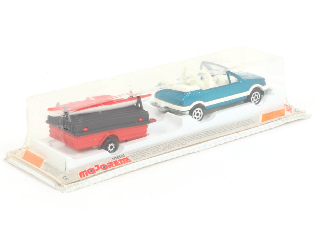 MAJORETTE (FRANCE) 372 PEUGEOT 205 GTI & remorque canoë bleu, rouge & noir