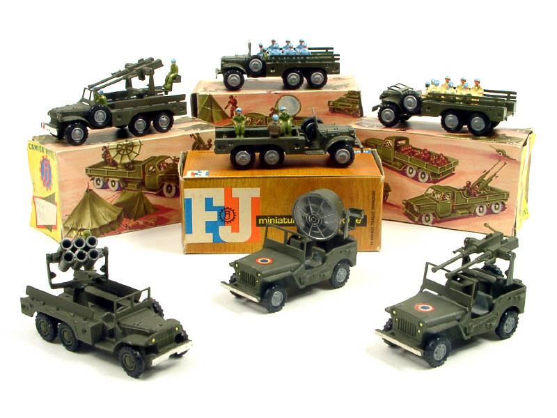 FRANCE JOUETS (FRANCE) Ensemble de 7 véhicules militaires kaki