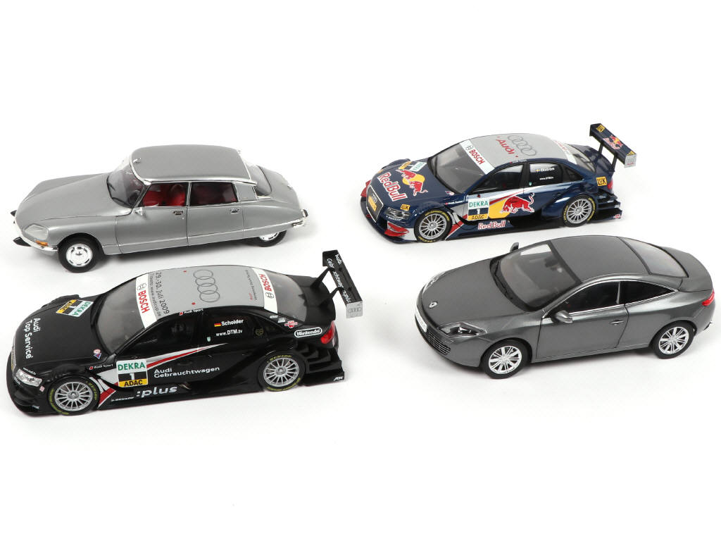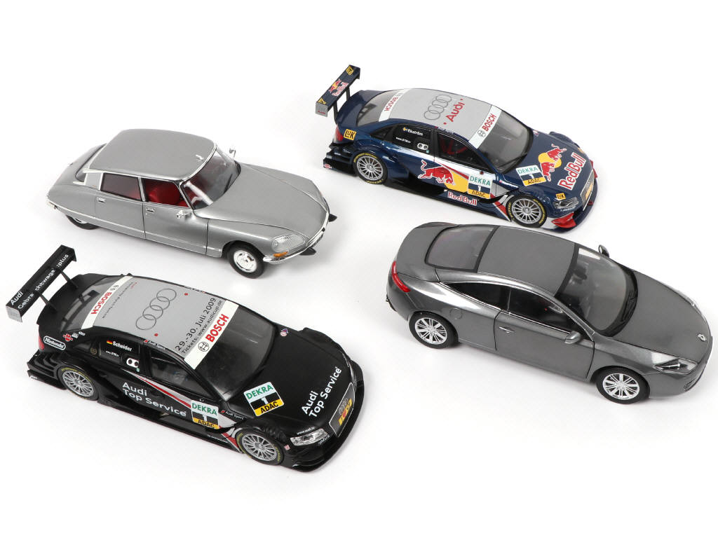 échelle 1/18ème - on y retrouve les modèles : CITROËN DS 23 PALLAS, AUDI A4 DTM & RENAULT LAGUNA - possibilité de petits manques & parties cassées