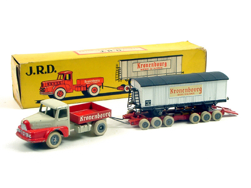 JRD (FRANCE) 123 UNIC avec remorque rail-route 'KRONENBOURG' blanc cassé & rouge