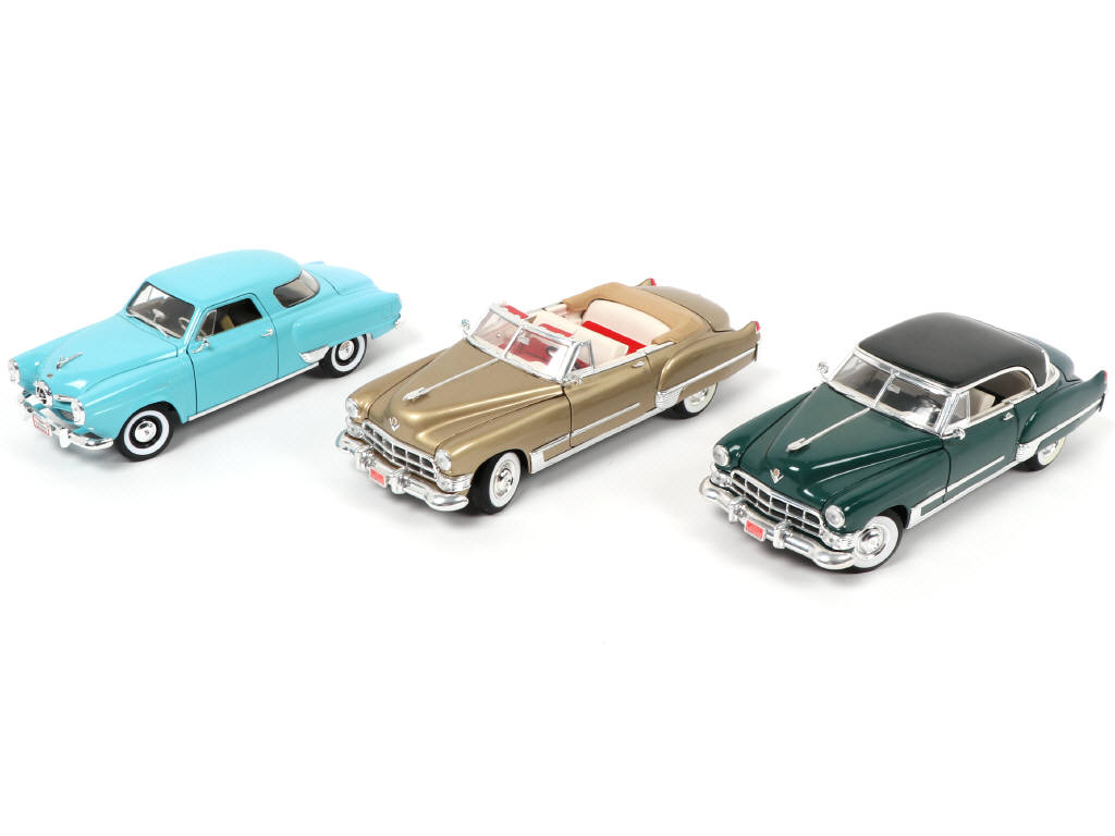 échelle 1/18ème - on y retrouve les marques : ROAD SIGNATURE & ROAD LEGEND ainsi que les modèles 1949 CADILLAC & 1950 STUDEBAKER CHAMPION - modèles légèrement encrassés